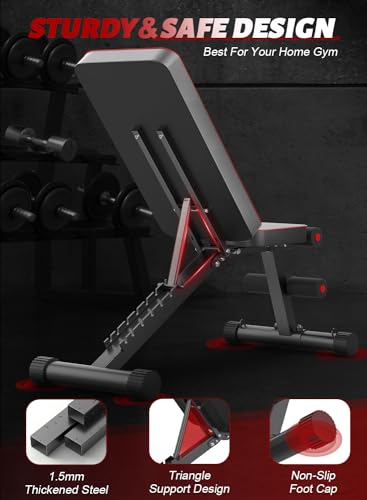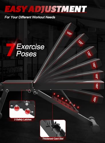Adjustable Weight Bench, Utility Foldable Weights Bench for Full Body Workout, 7 Backrest Adjustment Multifunctional Incline/Decline Bench Press for Home Gym, Weight Capacity 660LBS