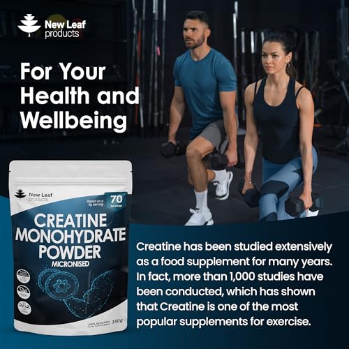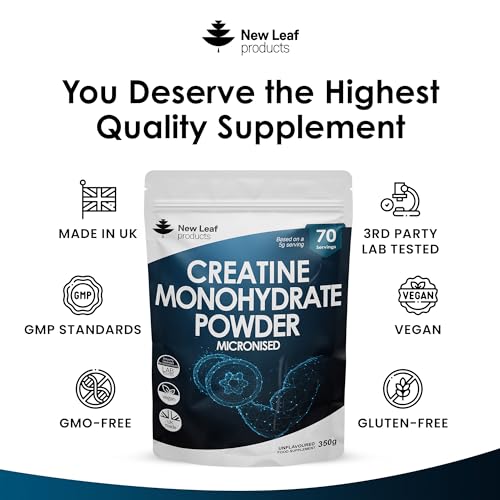 Creatine Monohydrate Powder 100% Pure Micronized Creatine – 350g Increased Absorption & Mixing, Creatine Powder for Physical Performance + Scoop Pre Post Workout Gym Supplements UK Made by New Leaf