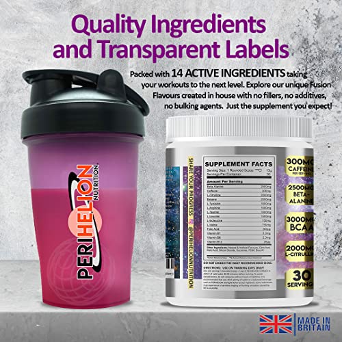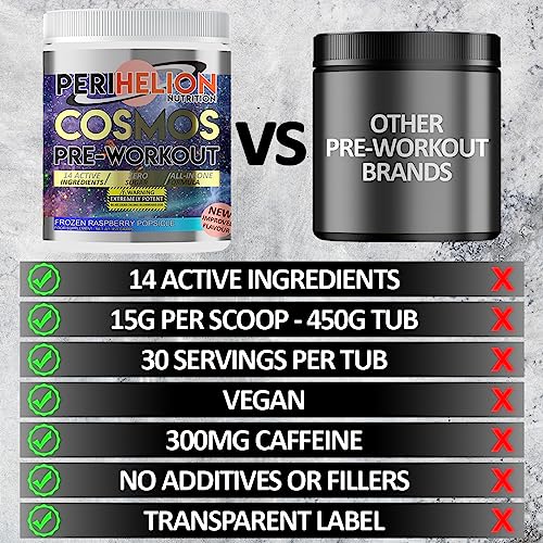 Perihelion Nutrition Cosmos All-in-ONE Pre-Workout 450g Energy Booster Supplement Powder with 300mg Caffeine + Beta Alanine + Amino Acids + Vitamins 30 Strong Servings (Frozen Raspberry)