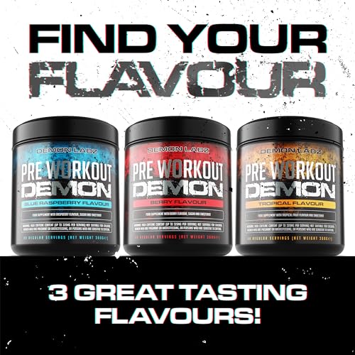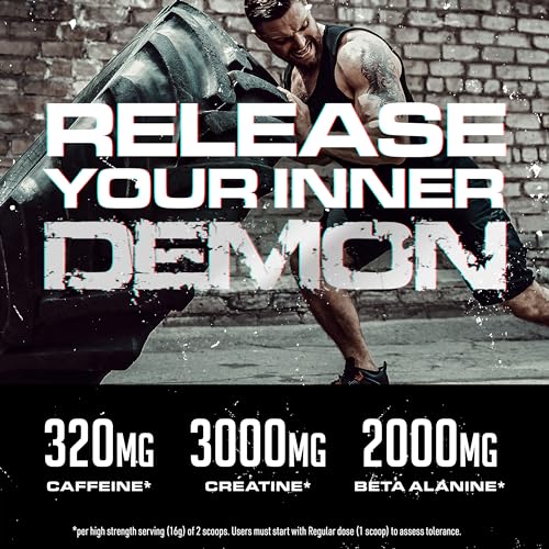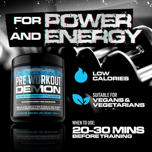 Pre Workout Demon – Hardcore Pre-Workout Powder Supplement with Creatine, Caffeine, Beta-Alanine and Glutamine (Blue Raspberry, 360g)