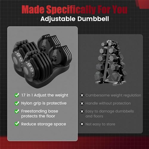 💪【Space saving Design】Each set of dumbbells has an exclusive high-density base to prevent the dumbbells from directly touching the ground. Not only protect the dumbbells, but also prevent hitting the floor.