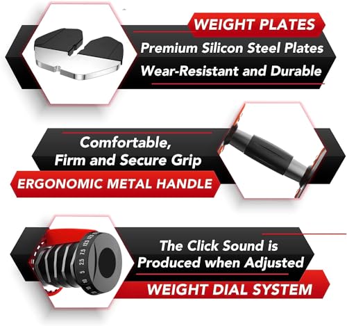 💪【Safe and Stable Structure】Adjust the weight of the adjustable dumbbells on the base. After lifting the dumbbell, the dumbbell pieces will automatically lock. When you are using it, you will not feel the shaking of the weights at all. You can do training smoothly. HAKENO has an exclusive built-in locking structure to ensure safety.