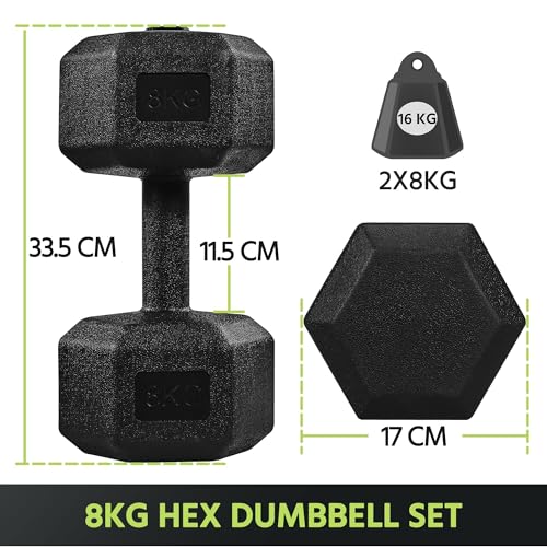 【Must-have Home Gym Equipment】The versatility of this 16 kg hex dumbbell set allows you to target various muscle groups, helping you achieve your fitness goals. The weights are ideal for arm rows, goblet squats, dumbbell clean, farmer’s walks, bent-over rows, step-ups, chest presses, deadlifts, and more.