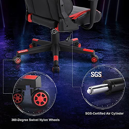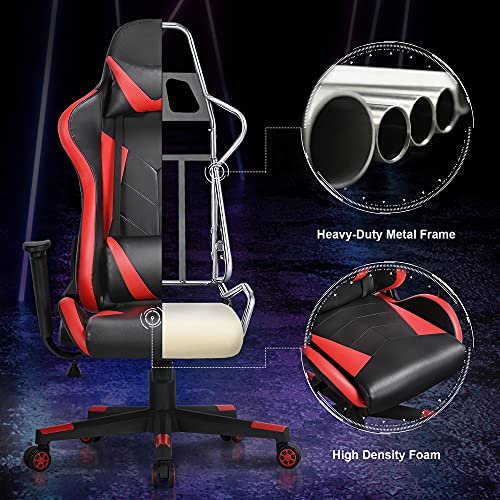 costoffs Gaming Chair High Back Game Chairs Executive Swivel Racing Chair with Adjustable Lumbar Support and Headrest Pillow Red