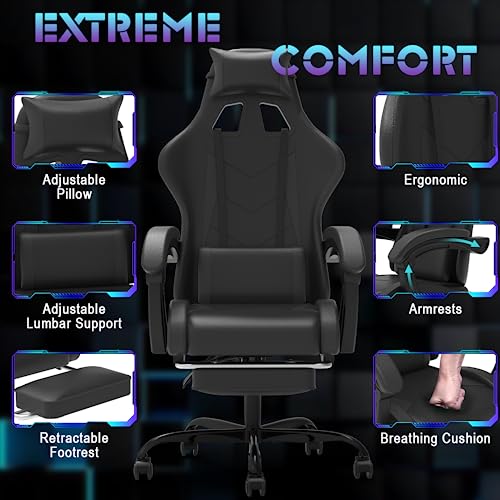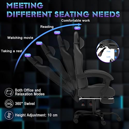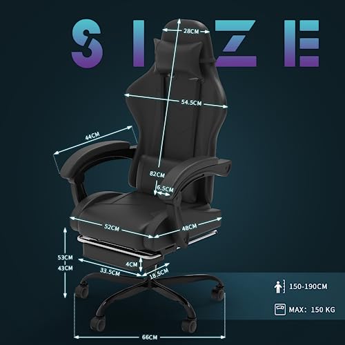Devoko Massage Gaming Chair, Computer Office Chair with Footrest, Racing Gamer Chair 150 kg Load Capacity, 90-135° Backrest Adjustable Ergonomic PC Chair, 360° Rotatable, Black