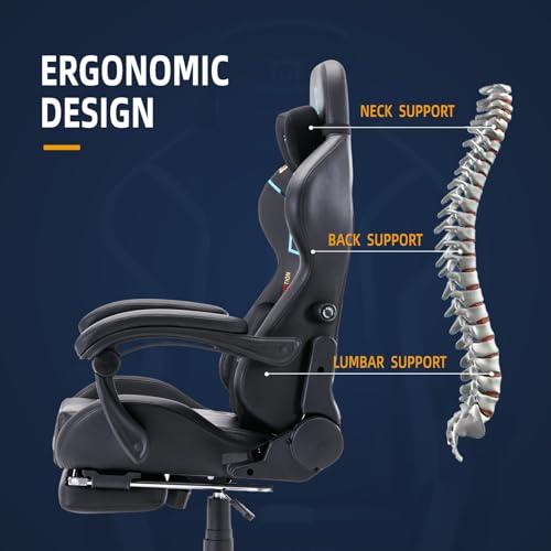 Upgraded Features:Featuring a high-quality Class 4 gas lift that’s durable and reliable, supporting a maximum weight of up to 350 pounds. The 360° swivel multi-directional nylon casters roll quietly and have been tested for 1000 miles of rolling. The gaming chair, designed with long-term ergonomic considerations, comes equipped with an internationally certified high-security explosion-proof gas lift and a metal frame that ensures exceptional stability.