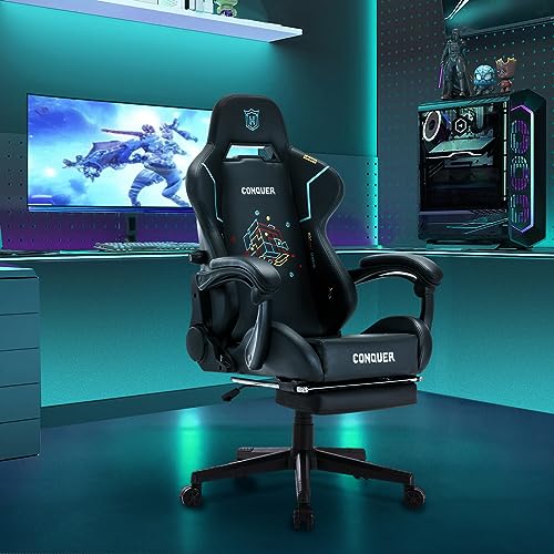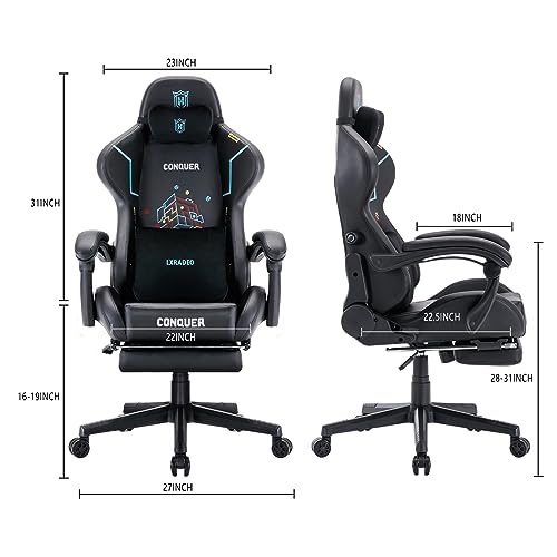 MIXASTEP Gaming Chair PC Office Chair Ergonomic with Inner Adjustable Lumbar Support, Racing Style Armchair Faux Leather Retro Reclining Chair with Rocking Function and Footrest 350lbs Capacity, Black