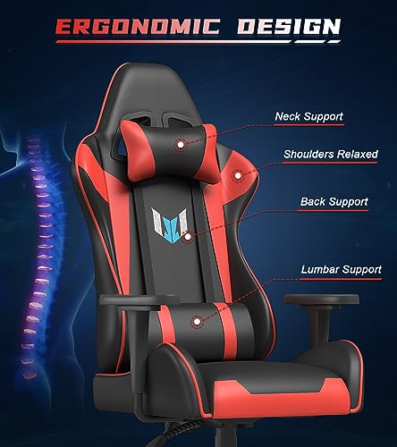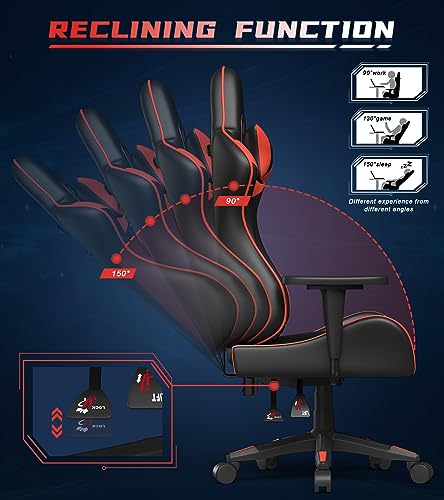 Racingreat Gaming Chair, Office Chair, Computer Chair, Sturdy PC Swivel Chair, Ergonomic Design with Cushion and Reclining Backrest (Black/Red)