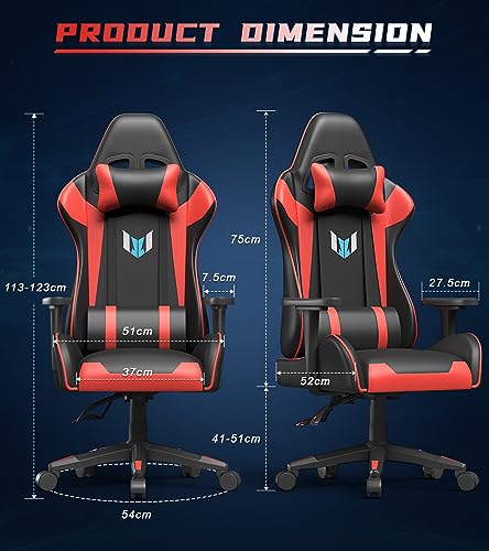 Comfortable gamer chair: The chair is equipped with two removable and adjustable cushions to ensure optimal comfort. The lumbar cushion supports and relaxes your back, while the neck cushion allows you to keep your head in a comfortable position to relieve tension.