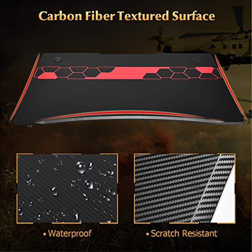 【Spacious Carbon Fiber Gaming Surface】The wide desktop measures 115 cm X 66 cm, designed to provide spacious enough space so that gamers can place various game. Besides, carbon fiber surface features added strength and comfortable touch for better gamer experience.