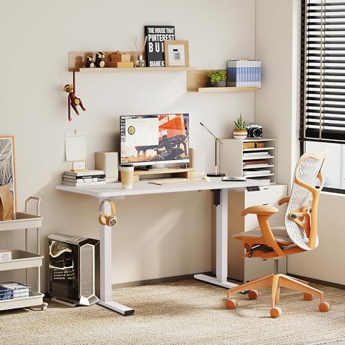 Devoko Electric Standing Desk 120x60cm Sit Stand Table Height Adjustable Desk with Backpack Hook and Memory Smart Pannel, White