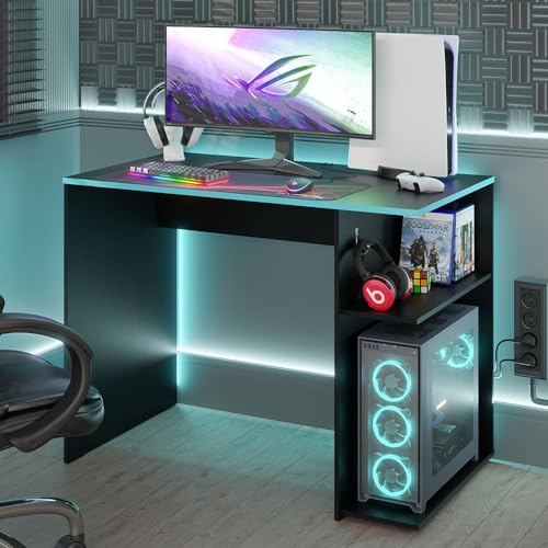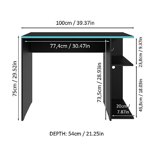 Madesa Compact Gaming Computer Desk with 2 Shelves, Cable Management and Large Monitor Stand, Wood, 54 D x 100 W x 75 H – Black/Blue