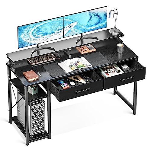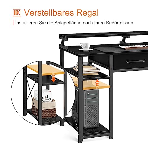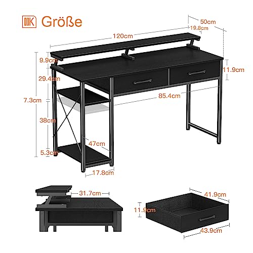 ODK Computer Desk with Drawers, Office Desk with Storage & Shelves, Work Writing Desk with Monitor Stand Shelf, Rustic Brown Home Office Desks for Small Spaces (Black, 120x50x90cm)