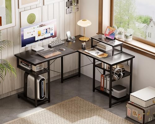 Spacious L-Shaped Desktops Design: The l shaped desk is experience two large desktops of varying lengths, ideal for accommodating 2-3 monitors or screens and providing ample space for books, papers, plants, and accessories.