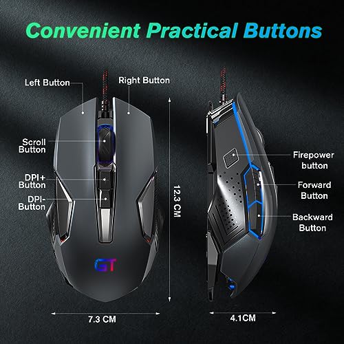 RaceGT Gaming Mouse, Wired Gaming Mouse Ergonomic Mouse Gaming 4 RGB Backlight Gamer Optical Gaming Mice with Fire Button for Computer PC Mac Laptop Desktop