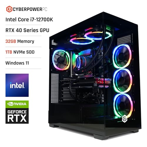 CYBERPOWERPC Luxe Gaming PC – Intel Core i7-12700K, Nvidia RTX 4060 8GB, 32GB RAM, 1TB NVMe SSD, 650W 80+ PSU, Wi-Fi, Liquid Cooling, Windows 11, Prism RGB