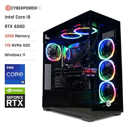 CYBERPOWERPC Luxe Gaming PC – Intel Core i9-14900KF, Nvidia RTX 4080 16GB, 32GB RAM, 1TB NVMe SSD, 750W 80+ PSU, Wi-Fi, Liquid Cooling, Windows 11, Prism RGB