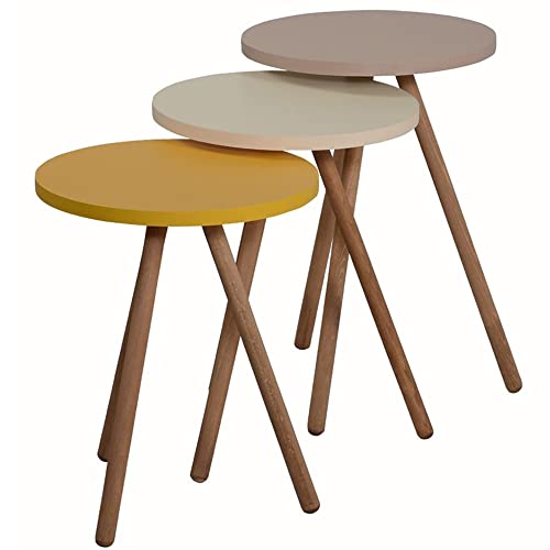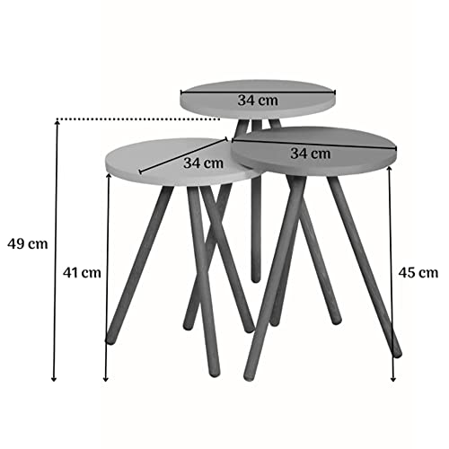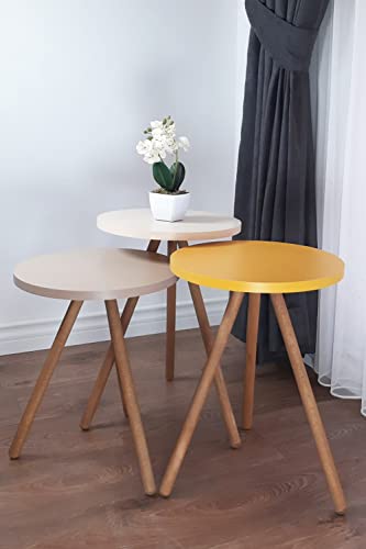 Evdekimoda 3 Piece Set Coffee Table Wood for Living Room and Office, Side table End Table Nested Coffee Tables (White, Round)