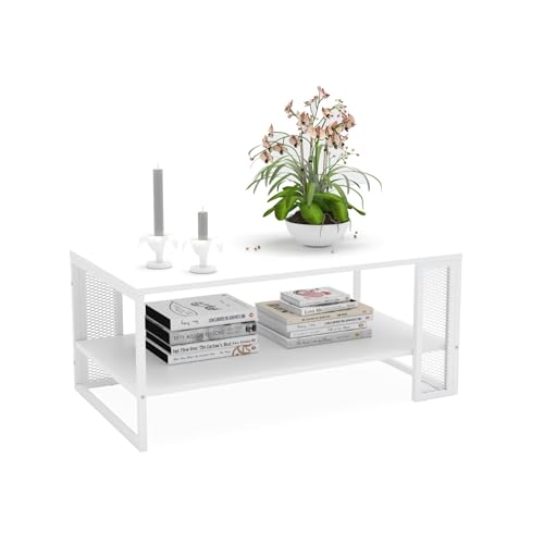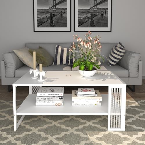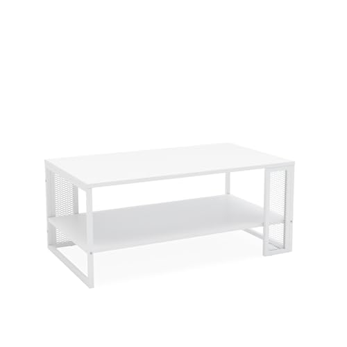 Mabel Home Mela Coffee Table, Living Room Table with Metal Frame 81x50x45 cm (White)