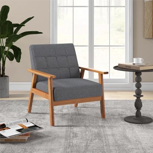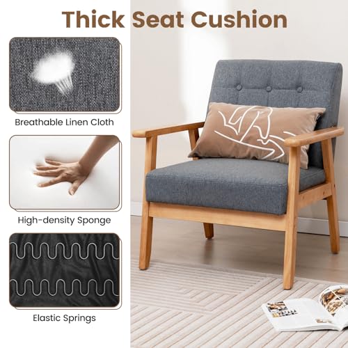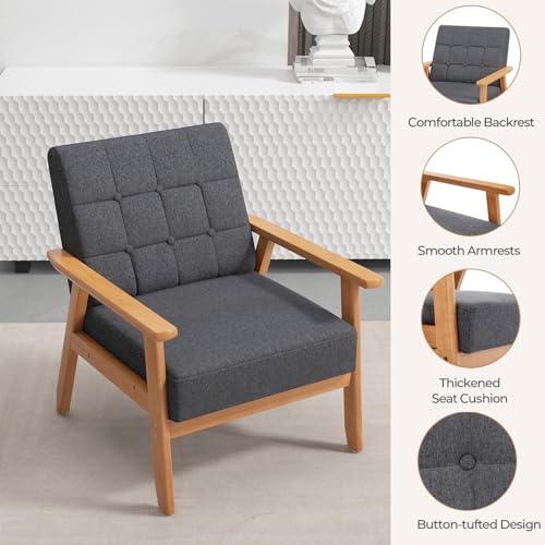Multigot Accent Armchair, Button Tufted Upholstered Lounge Chair with Rubber Wood Frame, Linen Fabric Single Sofa Chair Modern Leisure Chair for Living Room Bedroom Office