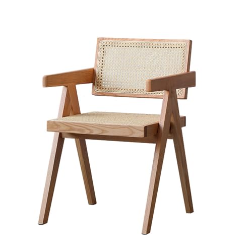Oak Armrest Dining Chair, Natural Rattan Backrest Solid Wood Armrests V-shaped Wooden Legs, Dining Room Chair With Rattan For Kitchen/Dining Room/Living Room/Study