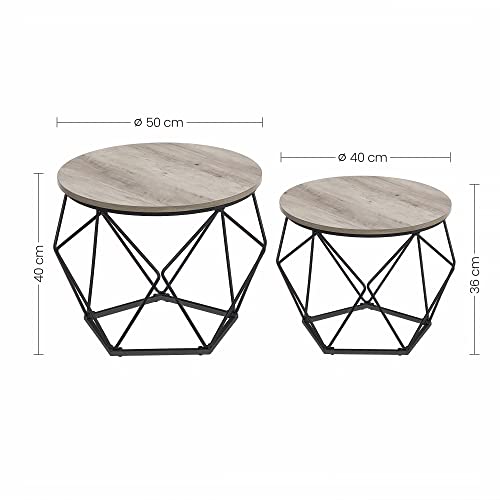 VASAGLE Round Coffee Table, Set of 2, Side Table, Sofa End, Industrial Style, Removable Tray, Steel Frame, for Living Room, Greyish and Black LET040B02