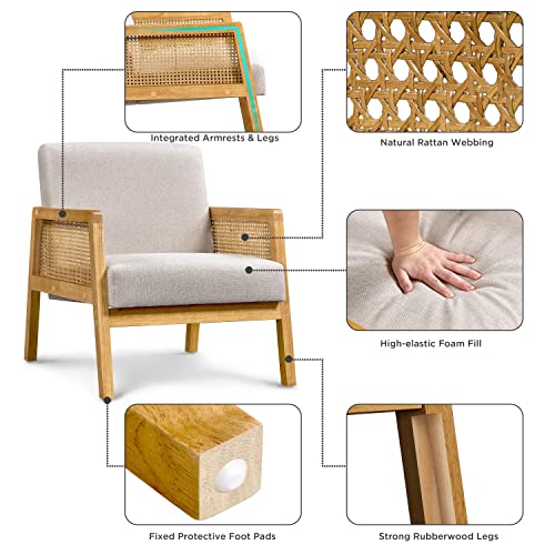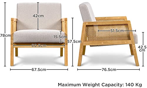 Yaheetech Armchair, Rattan Tub Chair with Rattan Sides, Rubberwood Legs for Living Rooms, Bedrooms, Lounges, Sunrooms, Beige