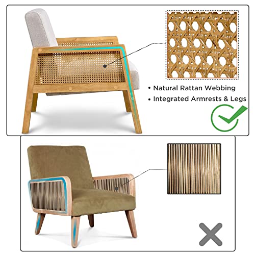 【Cane Paneled Armrests】What makes this accent chair unique is that we adopt handcrafted cane webbing to form beautiful woven arms. It is 100% natural and safe for your health. The natural hue and stylish texture add warmth and openness to your home or office.