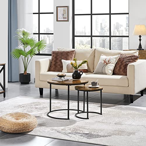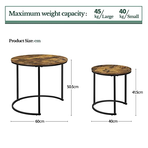 Yaheetech Coffee Table Set of 2, Round Nesting Table with Steel Legs, Industrial Stacking Cocktail Sofa Side Table for Small Space/Living Room/Bedroom, Rustic Brown, 60 x 60 x 50.5cm