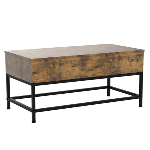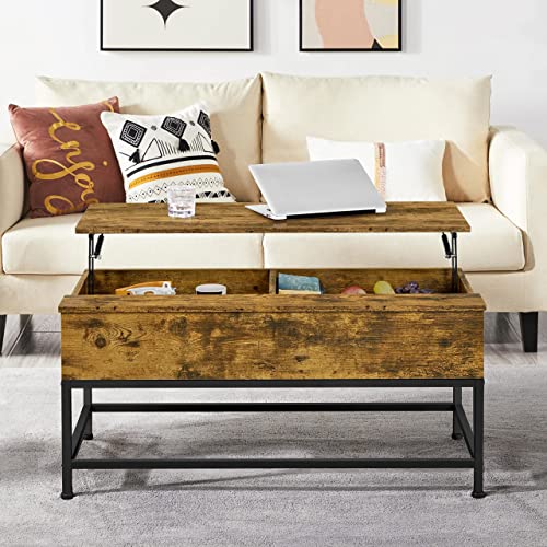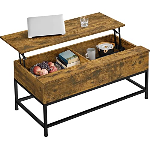 Yaheetech Lift-top Coffee Table with Storage Compartments and Metal Legs for Living Room, Wood Side Tea Table Retractable Sofa Desk for Home, Easy Assembly Rustic Brown