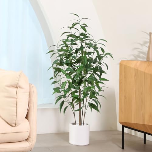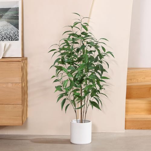 CROSOFMI Artificial Plants Indoor 125 cm Fake Tree Large Faux Plants With Plastics Pots for Modern Home Office Outdoor Decoration (1 Pack)