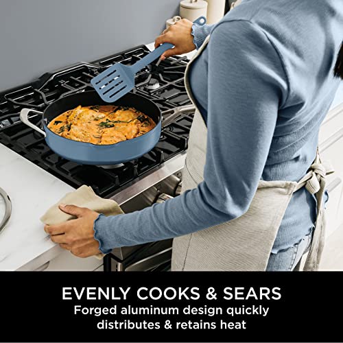 Ninja Foodi 9-in-1 PossiblePan with ZEROSTICK, Steamer/Strainer, Spatula, Glass Lid, 3.8L, Induction Compatible, Oven Safe to 260°C, Blue Macaroon, CW102BLUK