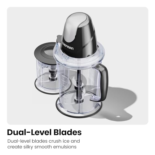 CHEFMAN 2-in-1 Food Processor and Portable Blender with 400W Motor, 2-Tiered Blade System, Ice Crusher – Ideal for Smoothies, Purees, Chopped Vegetables and More – Large and Small Jars, Pulse Function