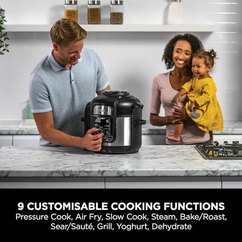 Multiple Cooking Functions: Pressure Cook, Air Crisp, Slow Cook, Steam, Sear/Saute, Bake/Roast, Grill, Yoghurt and Dehydrate