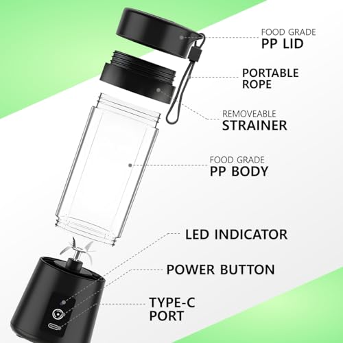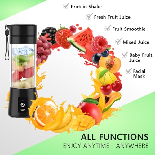 Portable Blender with 380 ml Capacity for Fruit Smoothies and Shakes, USB-Powered Juicer Ideal for Baby Food, Gym, Travel, and Various Uses.