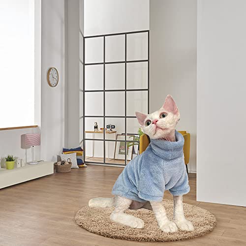 NAVESO Cats Vest Turtleneck Sweater, Sphinx Hairless Cat Clothes, Kittens Winter Clothes, Two-Legged Pet Turtleneck Sweater and Vest for Sphynx Hairless Cat Chihuahua Bulldogs, (Blue) L