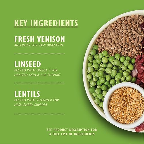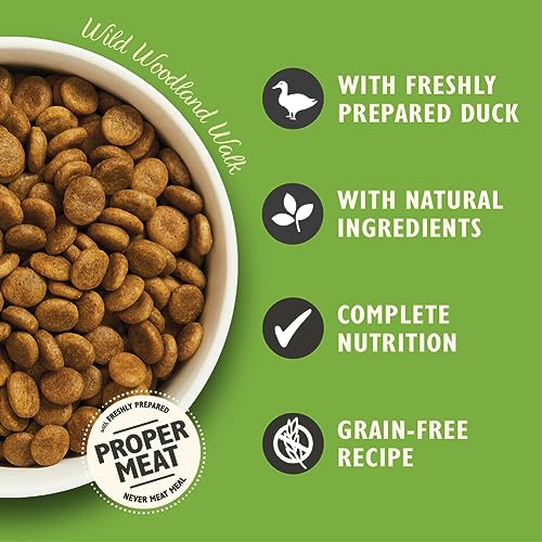 This grain-free recipe* dry dog food uses freshly prepared meat and offal, such as duck, salmon and venison. Made with carefully chosen fruits and vegetables, it’s bursting with wholesome goodness. For adult dogs 4 months+