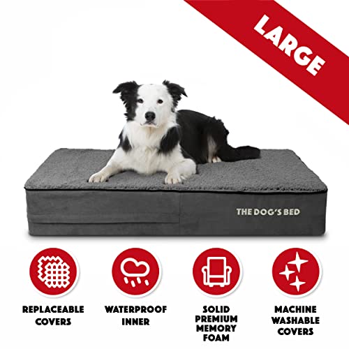 The Dog’s Bed Orthopaedic Dog Bed Large Grey Plush 101x64x15cm, Waterproof Memory Foam Dog Bed