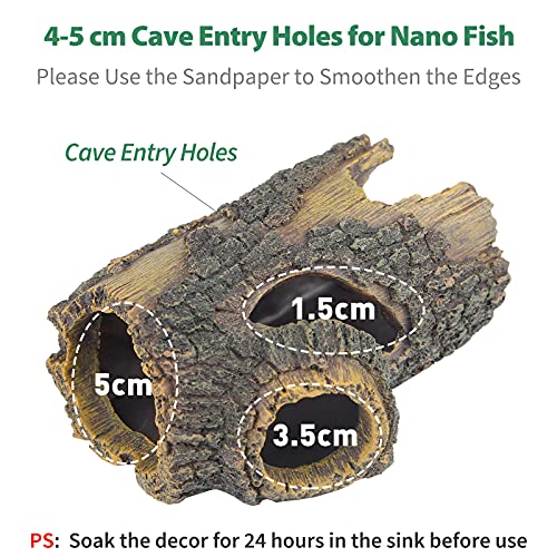 The natural and detailed bark pattern resin hollow tree trunk ornament is great for nano beta fish and guppies. Makes the tank look realistic and add much fun for the fish.