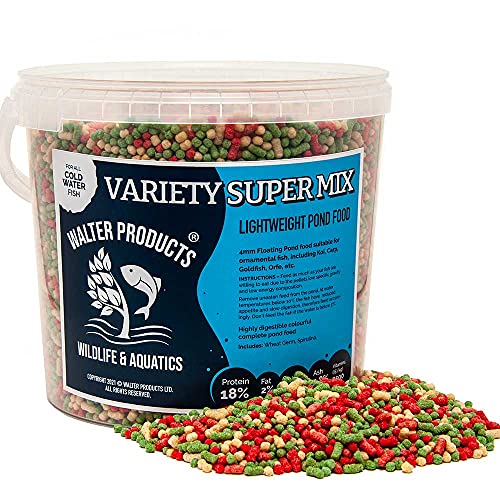 Walters Variety Super Mix (5L Tub) | Pond Fish Food for Goldfish, Koi and all Cold Water Pond Fish | Nutritional Floating Fish Food Pond Pellets and Sticks in Stay Fresh EasyTubs