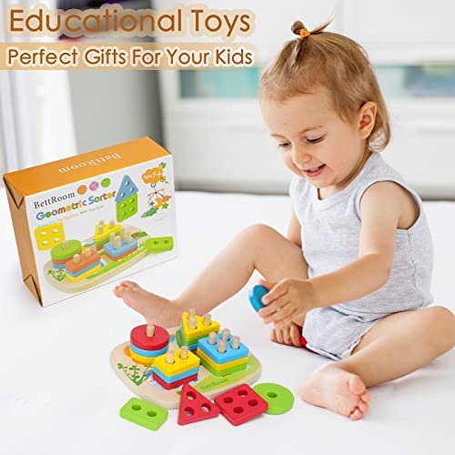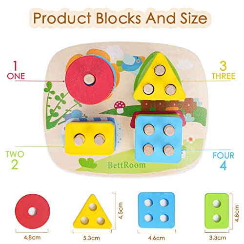 BettRoom Toddler Toys 1 2 3 Years Old Boy And Girl Solid Wooden Toys Preschooler Shape Color Judgment Help To Recognize Geometry Building Blocks Stack Classification Puzzle Children Baby