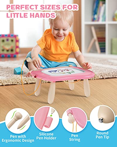bravokids Magnetic Drawing Board Toddler Toys,Kids Doodle Scribble Boards with Sturdy Leg,Birthday Easter Gifts for 1 2 3 Years Old, Etch a Sketch of Girl,Educational Learning Creative Games (Pink)