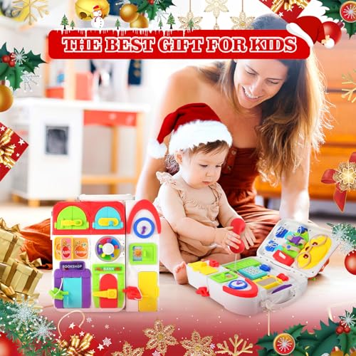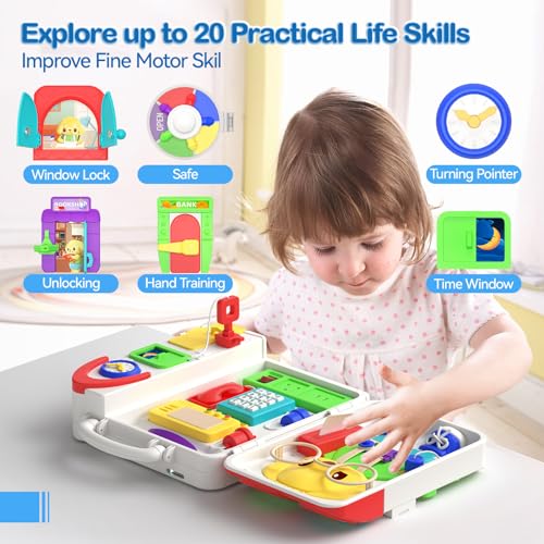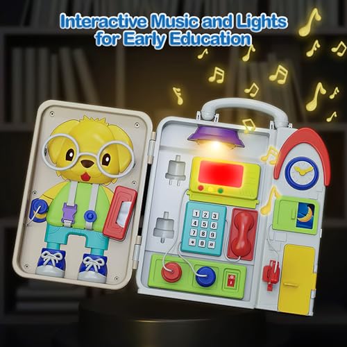 Busy Board Toddlers Toys for 1 2 3 year old, 20 in 1 Montessori Toys with Music and Light, Sensory Toys for Basic Life Fine Motor Skills, Educational Learning Toys Birthday Gift for Boys Girls