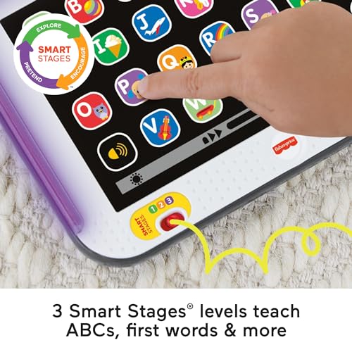 Fisher-Price Pretend Tablet Toddler Learning Toy with Lights Music and Smart Stages Educational Content, Gray, Laugh & Learn UK English Version, CDG33