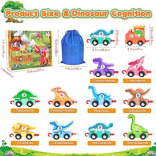 🦕【Dinosaur Train Set – 11Pcs】Cute dinosaur shaped trains are here! Our wooden train set includes a locomotive and 10 dinosaur train cars with a dinosaur print on both sides and the numbers 0-10.