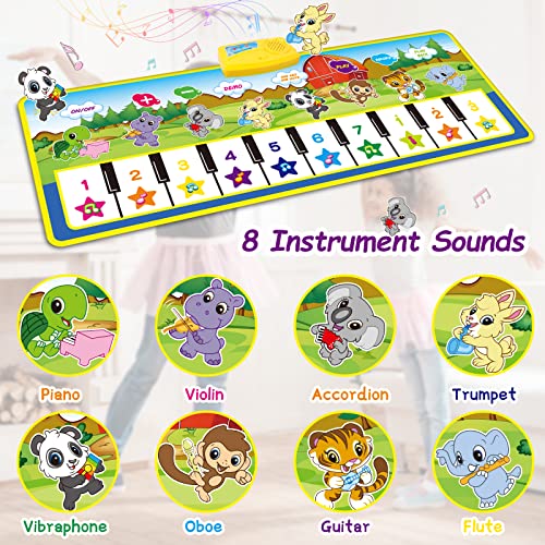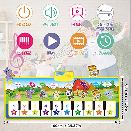 🎀EDUCATIONAL MUSICAL TOY — Piano childrens play mats girls toy for floor can develop your kid’s musical interest, enhance hand-foot coordination skills and imagination capacity, excitation the children’s talent for music, a creative toy for their children. Portable piano play mat with rich colors can also can help children to identify colors, animals, numbers and notes. Children can crawl, jump, kick, dance on this piano mat, which provides a good physical activity