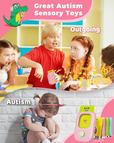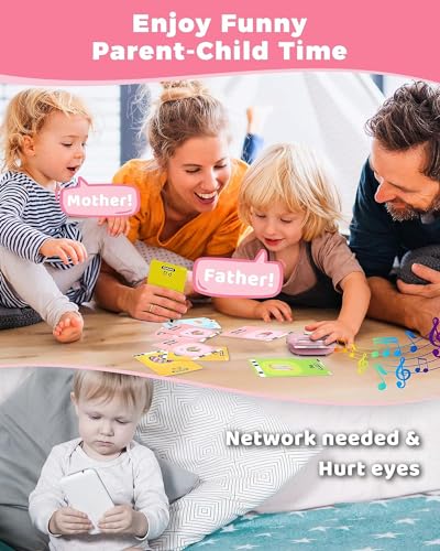 Talking Flash Cards for 2 3 4 5 6 Year Old Old Boys/Girls, Preschool Learning and Reading Toy with 224 British Words, Autism Speech Therapy Toys for Autistic Children, Montessori Toys (224 Words-Pink)