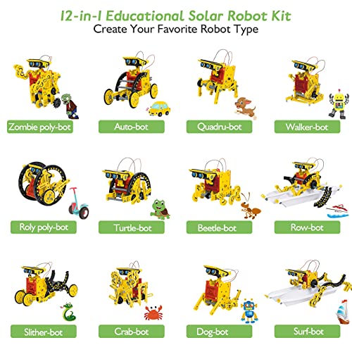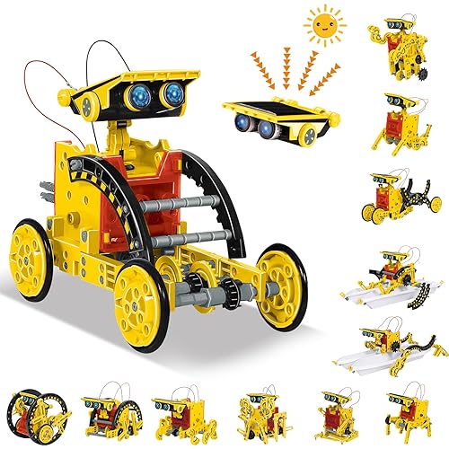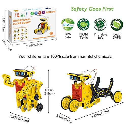 ACELIFE STEM Solar Robot Toy 12-in-1 Educational Science Kit DIY Building Toy Construction Engineering Set for Kids Age 8-12 Boys & Girls Birthday, Solar Powered Toy-Yellow