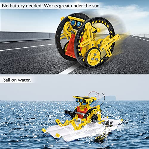 🌟【12-in-1 STEM Robot Toy】 The solar STEM toys can be built into 12 different types of robots and is able to move on land or water. Our solar robot kit contains 190 PCS of parts and your kids can follow the instruction booklet to build their own robots step by step and play with it in many situations.