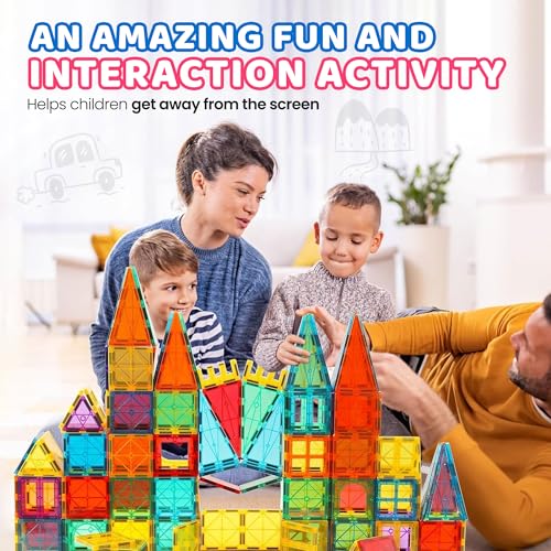 Spark Endless Creativity with 100 Magnetic Tiles: Jumpstart your child’s imagination with Azayar’s magnetic building blocks! Designed for tiny hands and big dreams, our set encourages kids to explore engineering and architecture, making it the perfect educational toy for 3-year-olds and up